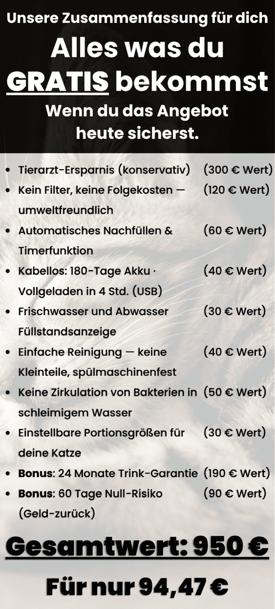 Kaufe SchnurrQuelle Trinkbrunnen völlig risikofrei – wenn du heute bestellst, schenken wir dir als Bonus die 60-Tage Null-Risiko-Garantie komplett GRATIS.