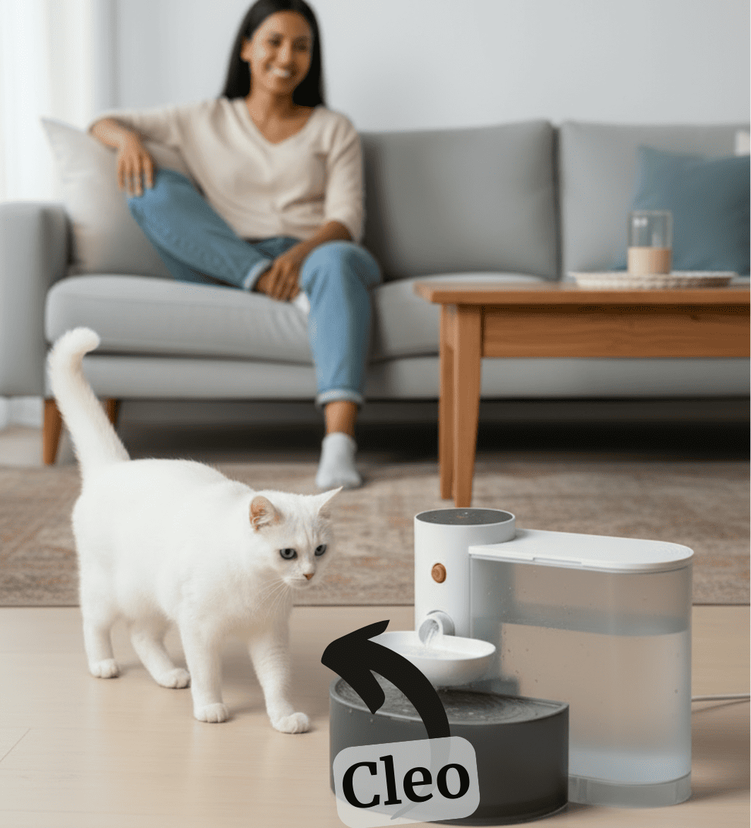"Ich war skeptisch wegen der Reinigung – aber der Brunnen ist total pflegeleicht! kein abgestandenes Wasser. Cleo liebt das frische Wasser, ich liebe die Ruhe.“